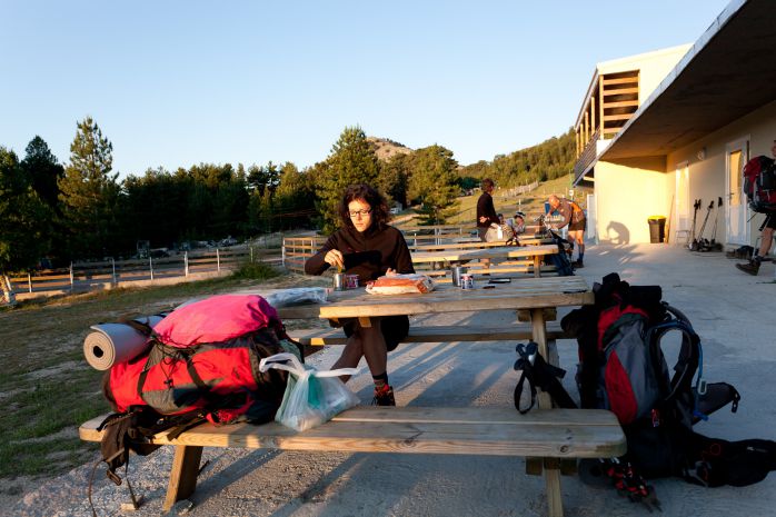 Je prépare le repas, pose mes affaires sur une table occupée par deux autres randonneurs qui s’entretiennent autour d’une bière. Viennent deux autres personnes qui poussent mes affaires sans demander, sans s’excuser. Puis deux autres. Les deux gars du début me disent qu’ils n’ont rien pu faire pour sauver nos places. Je déménage á une table voisine. Le groupe s’installe, s’étoffe, poussent nos deux premiers randonneurs sur le bout du banc. Les deux abdiquent. Ca picole dur (au moins quatre Pastis) et ca parle fort et méprise ouvertement les autres. Les autres randonneurs qui font le GR en couple ou en petit groupe ne tarissent pas de critiques envers ces gens sans savoir vivre. Usurpation de place, doublage dans les files d’attente, vol de bouffe (si si), refus de laisser passer sur les chemins. C’est la plaie du GR20! Les gardiens sont septiques, les individuels agacés et le niveau général du public du GR 20 s’en trouve rabaissé. Des beaufs qui ont trop peur d’organiser seuls leur séjour et qui pensent pouvoir faire le GR20 sans préparation en se reposant exclusivement sur le guide. Le lendemain, ca ne va pas être joli dans le cirque.