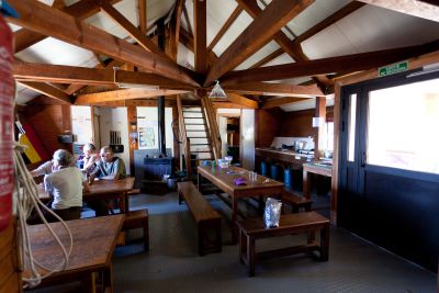 Le réveil sonne à 4h30 du matin. On s’extrait de nos sacs de couchage rapidement. Nous voici dans la salle commune du refuge. On n’y voit rien. On allume les lampes frontales. Nous sommes les premiers levés. On distingue deux personnes couchées par terre dans leur sac de couchage qui ronchonnent á notre passage. Curieux, il y avait encore de la place dans notre chambre. Mauvaise gestion des lits. On petit déjeune de tartine au Nutella, et de tasses de café et chocolat. Un passage aux toilettes nous permet de constater qu’il y a plus de mouvement dans le bivouac que dans le refuge. Nous sommes prêts á 5h30.