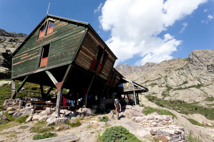 Après l’assignation des chambrées, on commence á discuté avec le gardien. Il y a un an et demi, l’émission envoyé spécial de France 2 avait diffusé un reportage sur le GR « GR 20, l’exploit au bout du chemin ». Nicolas vient de reconnaitre Charlie, le gardien de refuge le plus médiatisé du GR. Charlie confirme, il nous annonce même qu’il va passer dans le journal de Jean Pierre Pernaut en juillet (« douce France »…). S’en suit une conversation sur la fréquentation du GR, du manque de moyens financiers pour entretenir les refuges, des dysfonctionnements du nouveau système de réservation centralisé, de l’augmentation de la fréquentation sur le GR, du manque d’éducation des randonneurs et surtout des groupes. Les groupes, parlons en, car nous allons avoir une illustration de leurs comportements insupportables.
